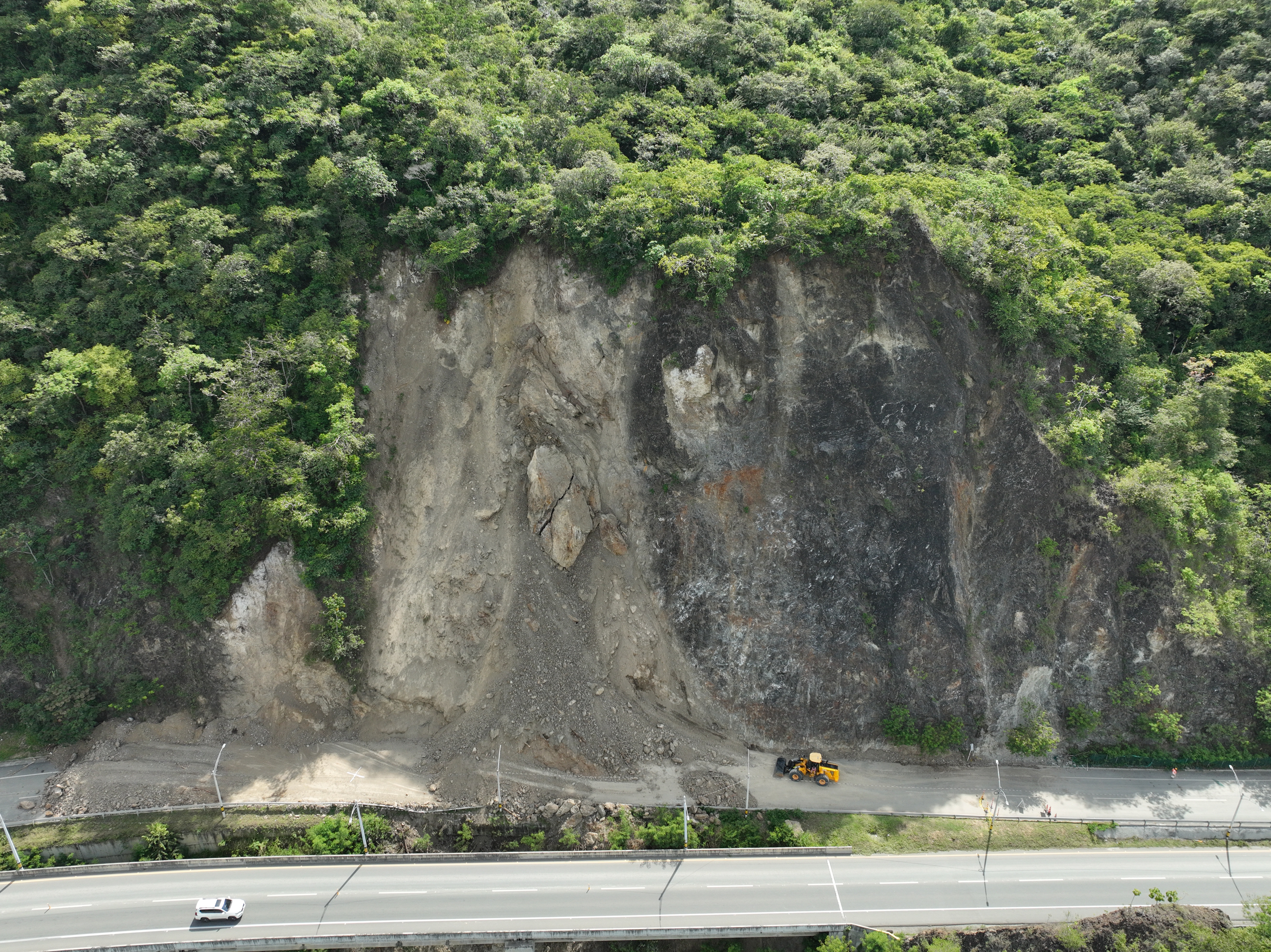 Sin embargo, después de realizar un vuelo de dron, se detectó una condición insegura en la parte superior del deslizamiento. Esto presenta una situación que debe ser evaluada rigurosamente por parte de expertos para garantizar la seguridad de los usuarios de la vía, los operadores de maquinaria e infraestructura antes de continuar con los trabajos de remoción.